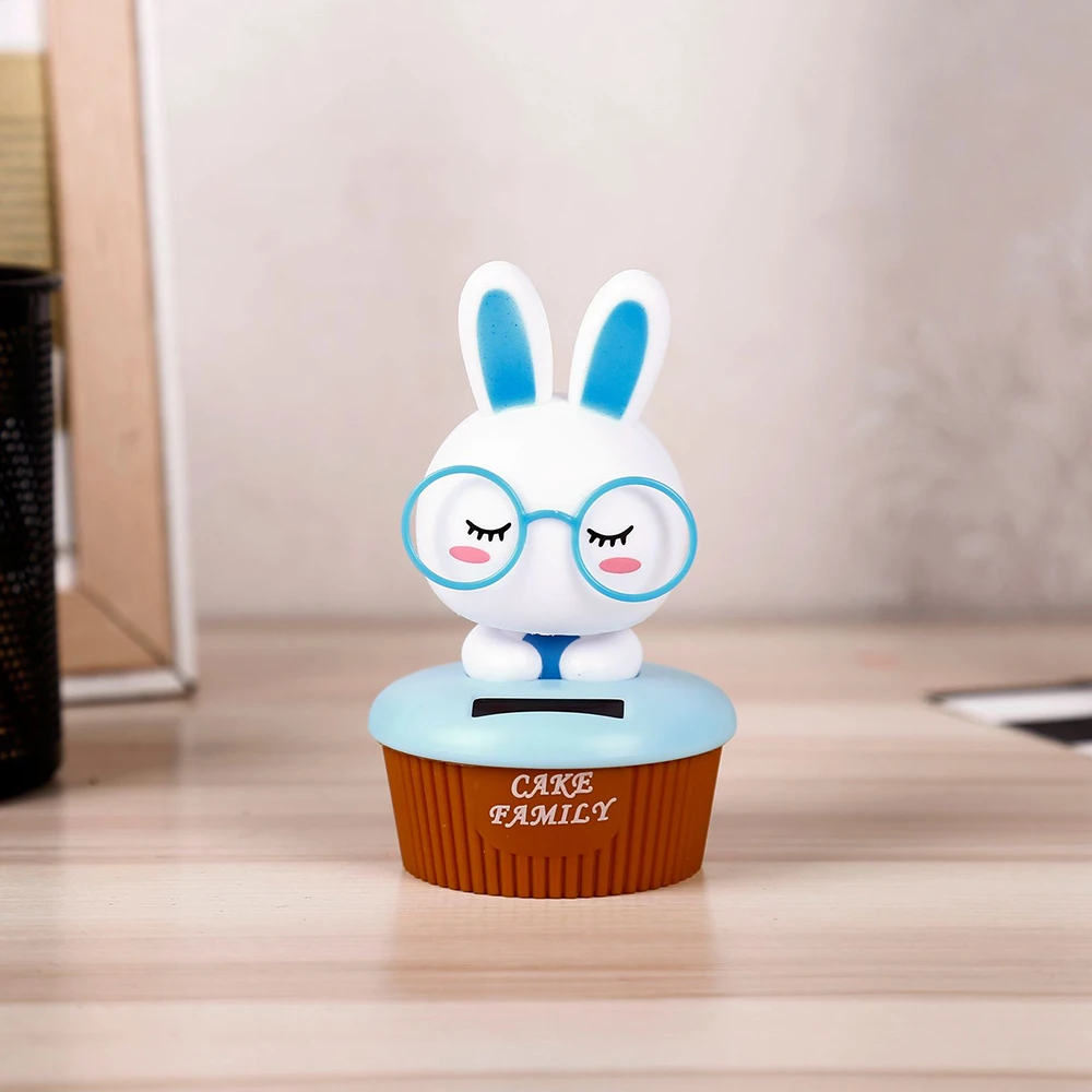 Car Ornament Shaking Head Cute Glasses Rabbit Cake Automobiles Decoration Solar Power Cartoon Toys