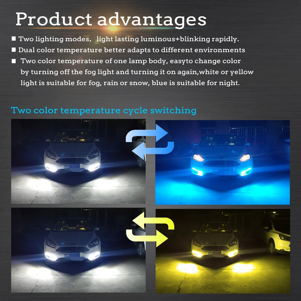 car accessories H9 880 881 H3 H8 LED bulbs Car fog light white blue yellow three color led bulb Aut