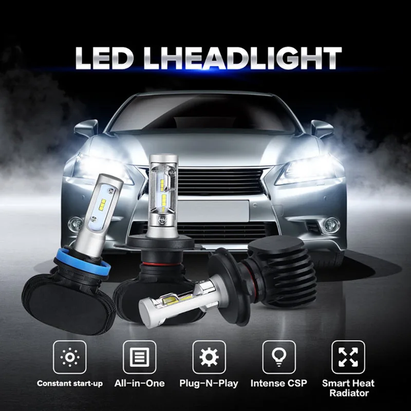 Elglux H11 H4 H7 Led H1 Auto Car Headlight S1 50W 8000LM 6500K Automobile Bulb All In One CSP Lumil