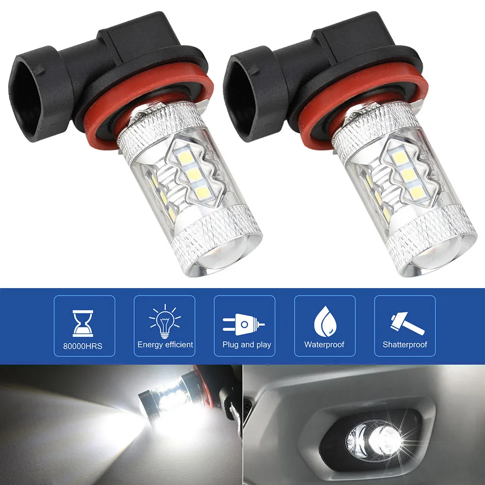 2pcs H8 H11 9005 9006 12V 100W 6000K White LED Car Fog Light Bulbs Highlighting Automobile LED Head
