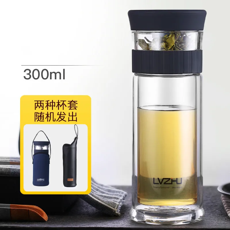 BEST QUALITY 400ml Portable Double Wall Borosilica Glass Tea Infuser Bottle of Water with Lid Filter Automobile
