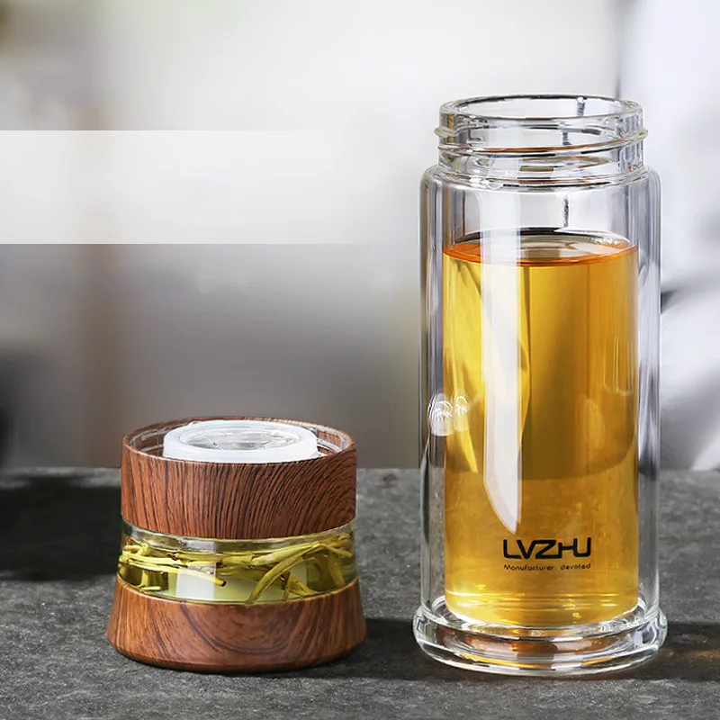 400ml Portable Double Wall Borosilica Glass Tea Infuser Bottle of Water with Lid Filter Automobile