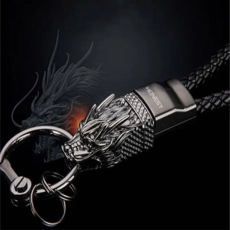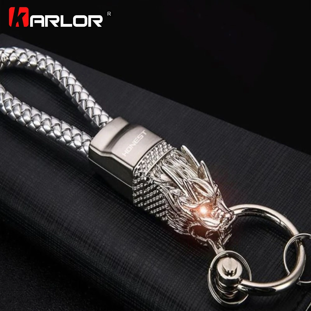 Dragon Head Model Weave Keychain Key Holder Zinc Alloy Durable Car Key Ring Chain Automobiles Car S