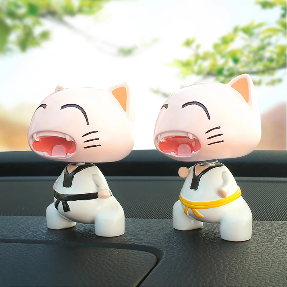 Cute Taekwondo Cat Shaking Head Car Ornaments Lovely Decoration Automobiles Interior Dashboard Nodd