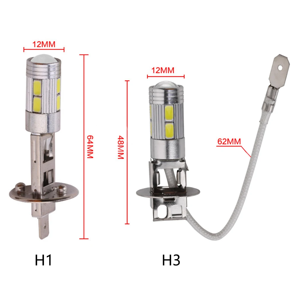 QCDIN 2Pcs 4W H1 Headlight COB Bulbs LED H3 Car Auto Headlamp Fog Lamp White 7000K-8000K Automobile
