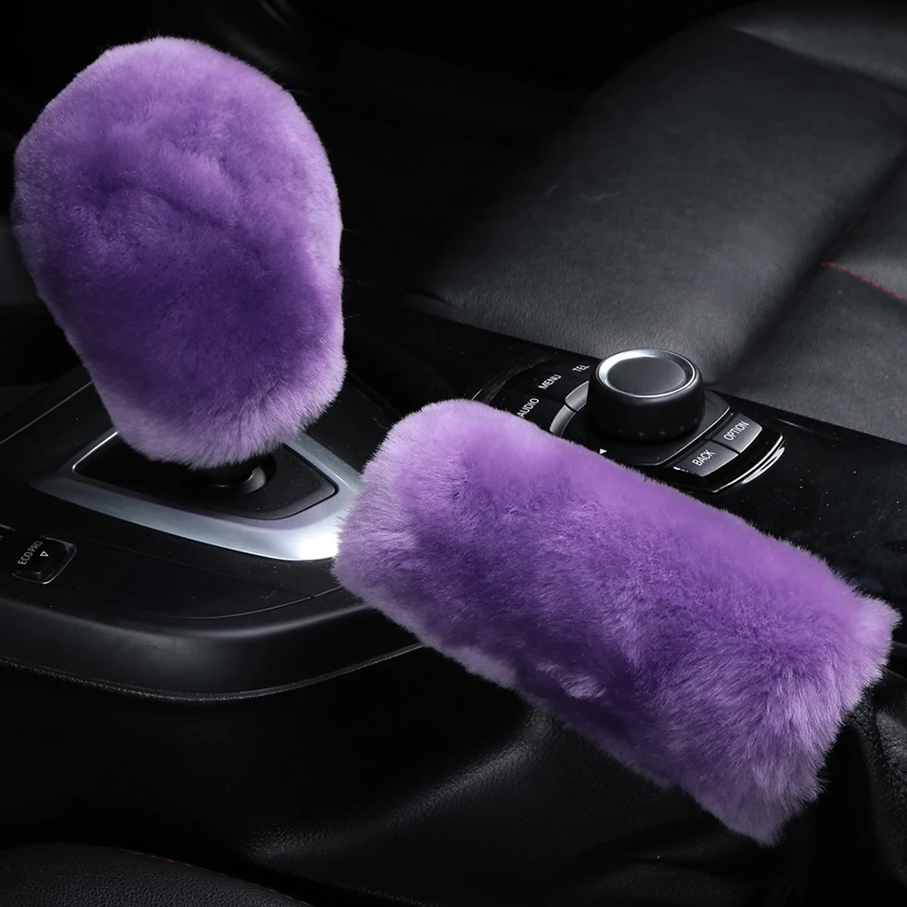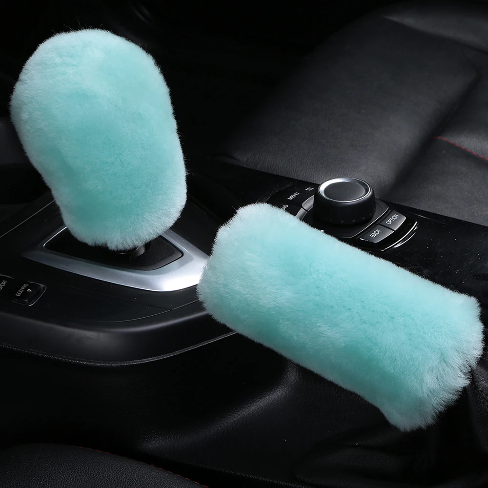 Fluffy Natural Fur Sheepskin Car Gear Shift Handle Level Stick Knob Covers for Automobile Selector