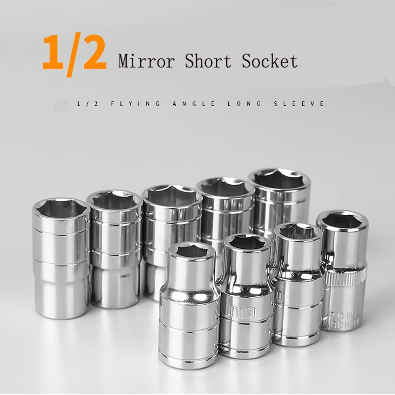 10PC 1/2 pulgadas corto largo Socket Set CRV 10-24mm Deep Socket electric spanner outer hexagonal a