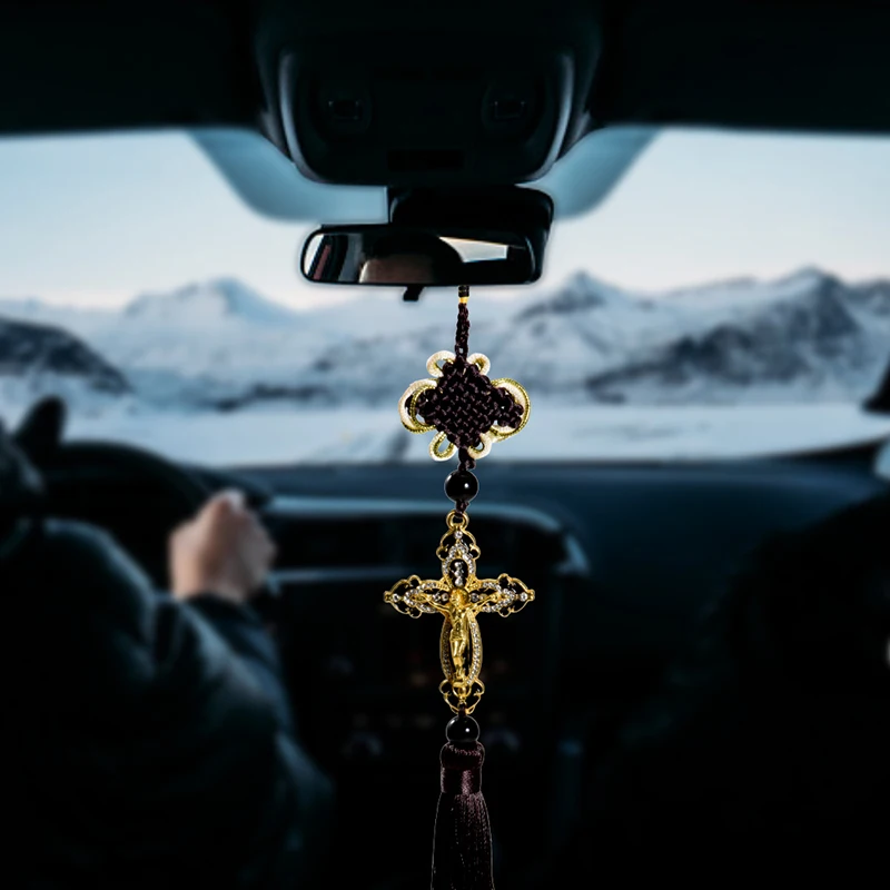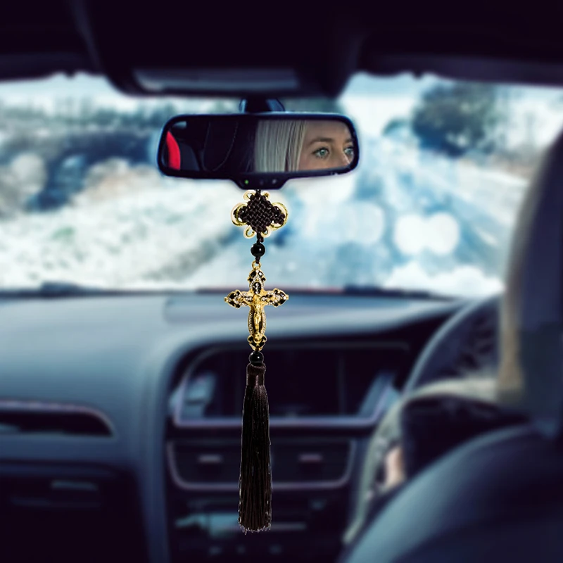 ORIGINAL Car Pendants Auto Decoration Jesus Figurine Cross Hanging Automobiles Rear View Mirror Christian Su